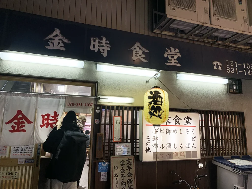 元町はしご酒の1軒目は、元町駅すぐの路地にある老舗大衆食堂「金時食堂」。創業は1951年。もともとは南京町にあったお店で、1961年(昭和36年)に現在の場所へ移転して以来、ずっとこのエリアの酒場文化を支えてきた名店です。外観はまさに“これぞ大衆食堂”。重厚感がありつつもどこか庶民的で、扉を開けると昼から飲んでいる常連さんの空気感が漂っています。