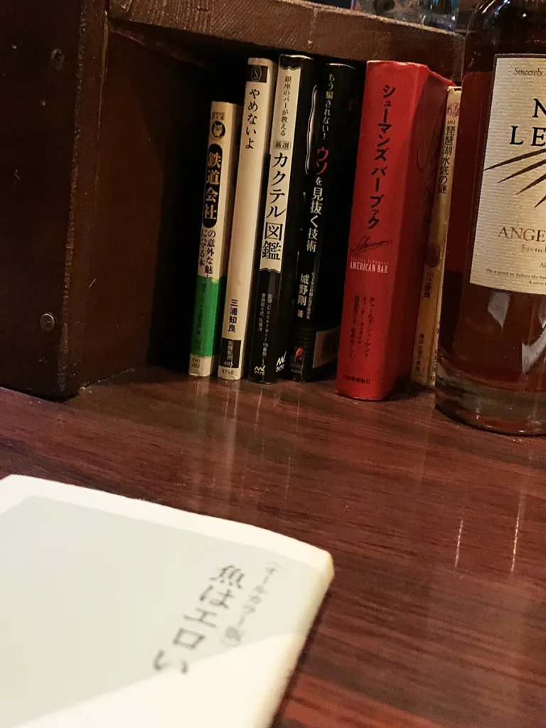 カウンターの前には小説も置いてあり、本を読みながら静かに飲むこともできます。…が、結局はマスターとのおしゃべりで盛り上がるパターンが多いかもしれません。「腕が立つより口が立つ」と自称するマスターで、最初は少しとっつきにくい(失礼)ですが、話してみるとかなり面白い人。予定では2杯のつもりでしたが、気づけば3杯。